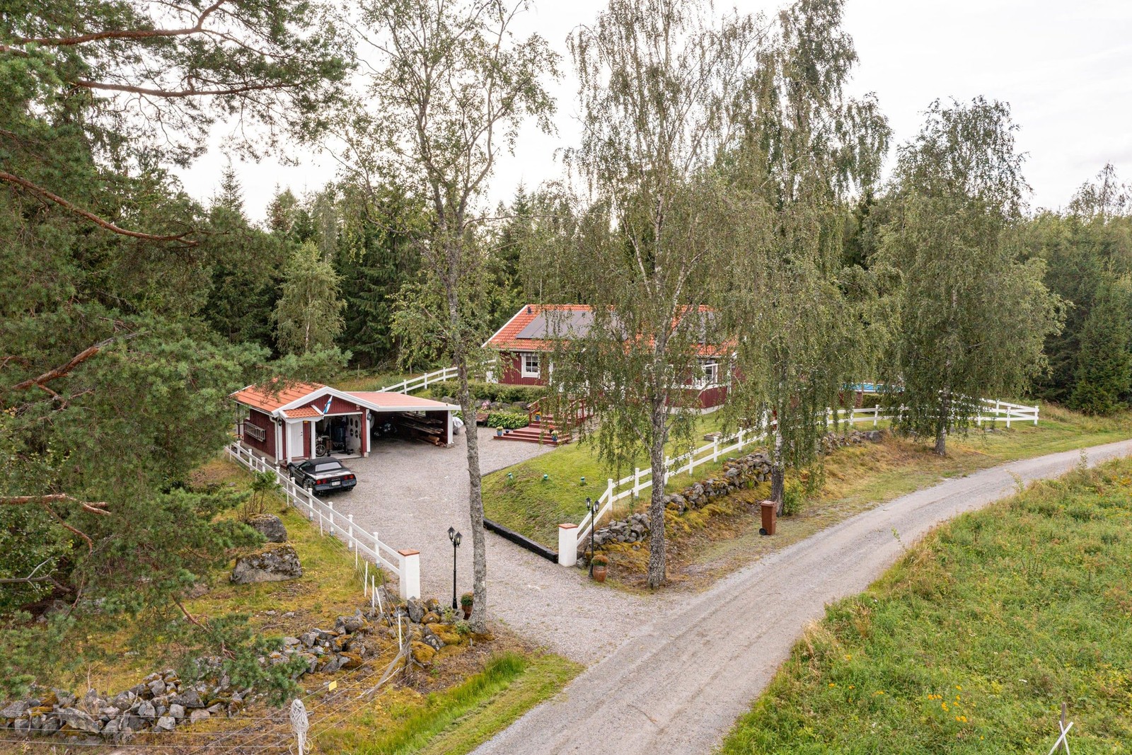 En lantlig idyll med flertalet byggnader i form av en enplansvilla om 113 kvm med byggår 2003, ett fristående garage om 36 kvm med vidbyggd carport, förråd och vedbod samt ett fristående förråd. Låga energikostnader med vattenburen golvvärme via frånluftsvärmepump och solceller på yttertak.