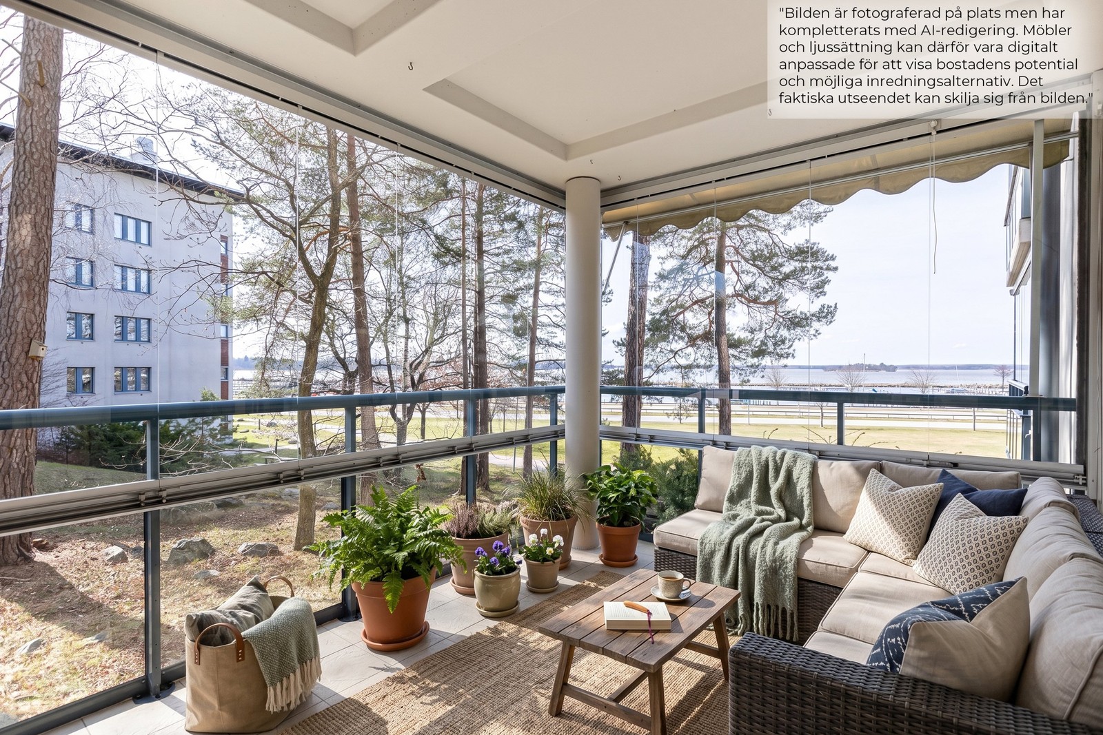 Hjärtligt välkommen till denna unika 4:a om 110,6 kvm! Utsökt boende vilket karaktäriseras av väl tilltagen och inglasad balkong med sjöutsikt samt magisk och rymlig uteplats innanför grönskande häck (insynsskyddad sommartid). Balkong och uteplats åt varsitt väderstreck. Trevligt vardagsrum med ljusinsläpp från två väderstreck samt värmande kamin. Utöver detta välplanerat kök, tre rogivande sovrum, badrum med tvättmaskin/torktumlare samt separat gäst-WC.