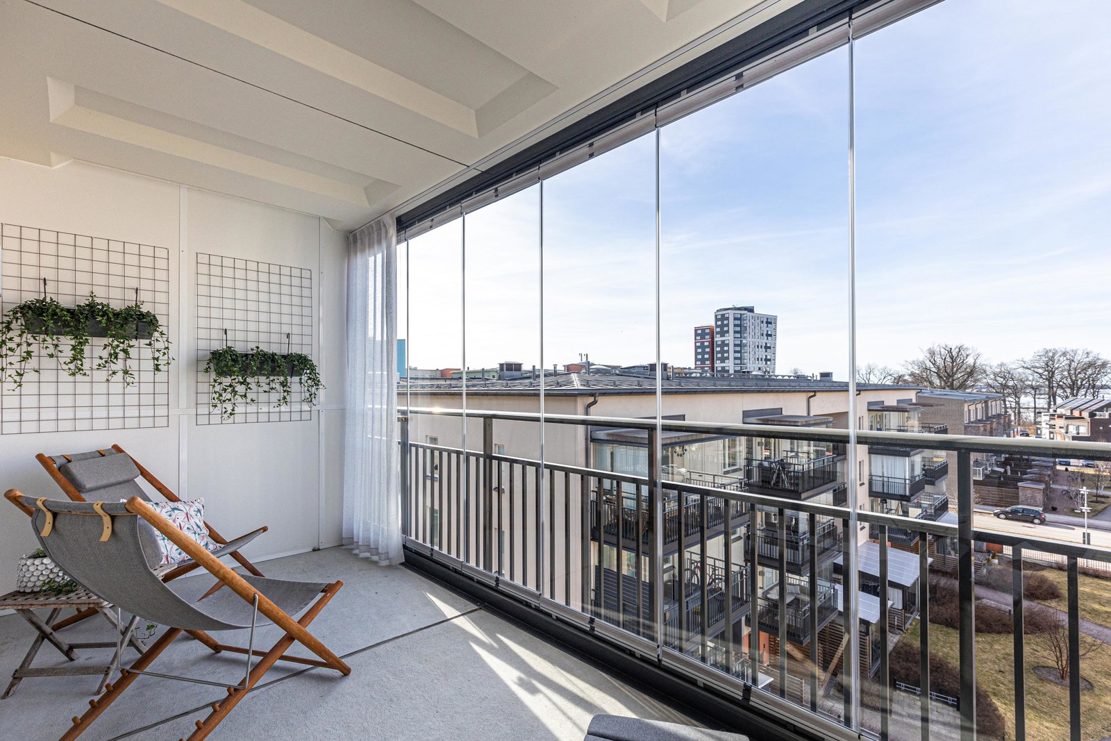 Möjlighet för inglasning av balkong och uteplats finns som man själv får ordna och betala. Tillstånd av styrelsen innan beställning och montering behövs.