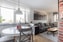 Köket är tidlöst och stilrent, med exemplarisk förvaring bakom vita luckor och grått kakel ovan arbets- och avlastningsytor. Den maskinella utrustningen består av spishäll, spisfläkt, inbyggnadsugn, diskmaskin samt fullstor kyl och frys. Invid fönster finns en ljus och trivsam matplats, och parkettgolvet knyter samman kök och sällskapsytor på ett elegant sätt.