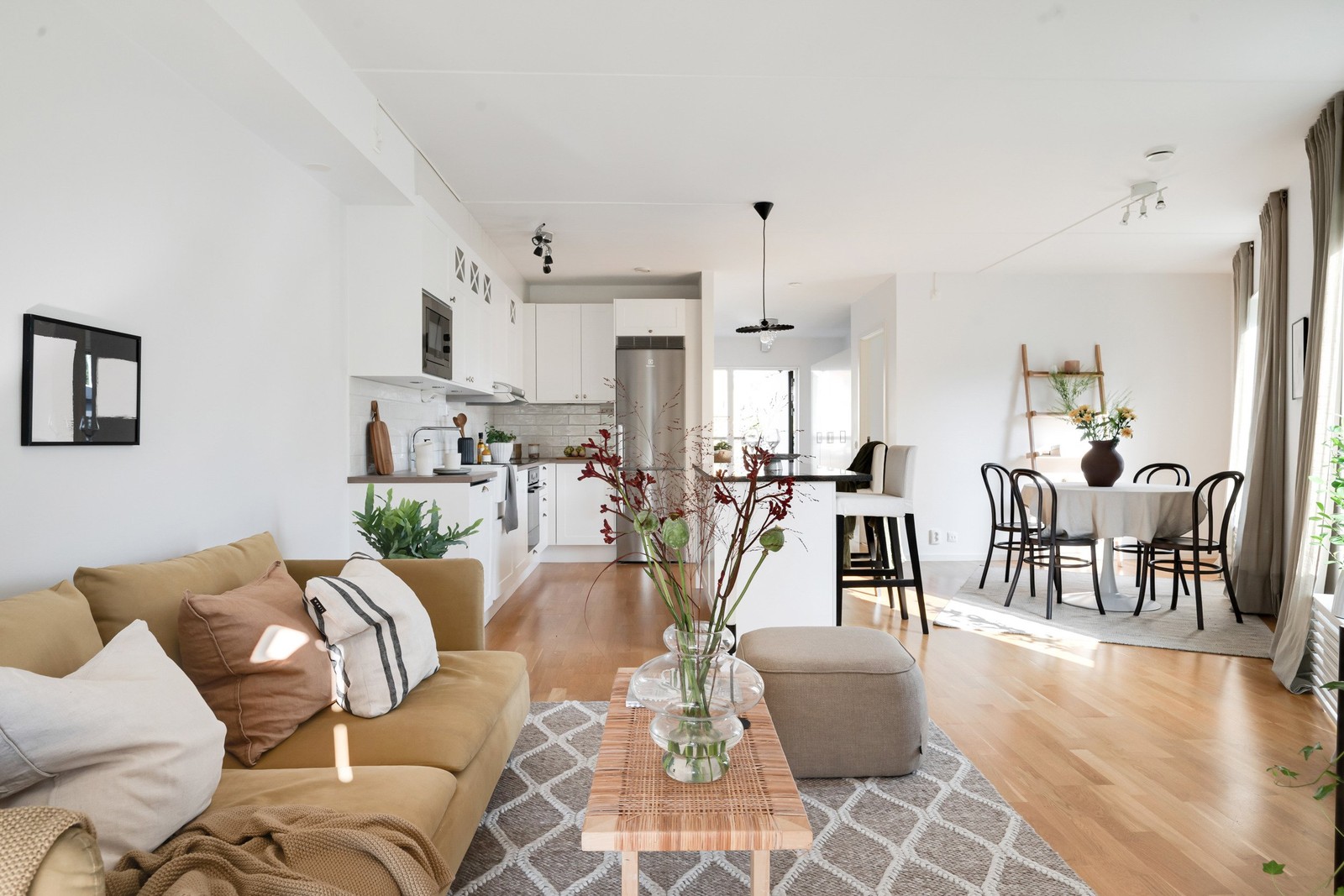 Ljusa ytor & modern design – gavel-tvåa med balkong