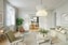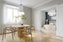 Via pardörrarna från vardagsrummet nås matsalen som utmärker sig genom att vara det mittersta rummet av de tre i fil och på så vis har de pardörrar mot två håll. Ett rum som verkligen blir hjärtat i bostaden där alla vänner och bekanta kan samlas. Fiskbensparketten löper sömlöst även här, väggarna är målade i en greige ton och en infälld hylla finns på ena väggen. Från matsalen finns åtkomst till vardagsrum, sovrum och kök.