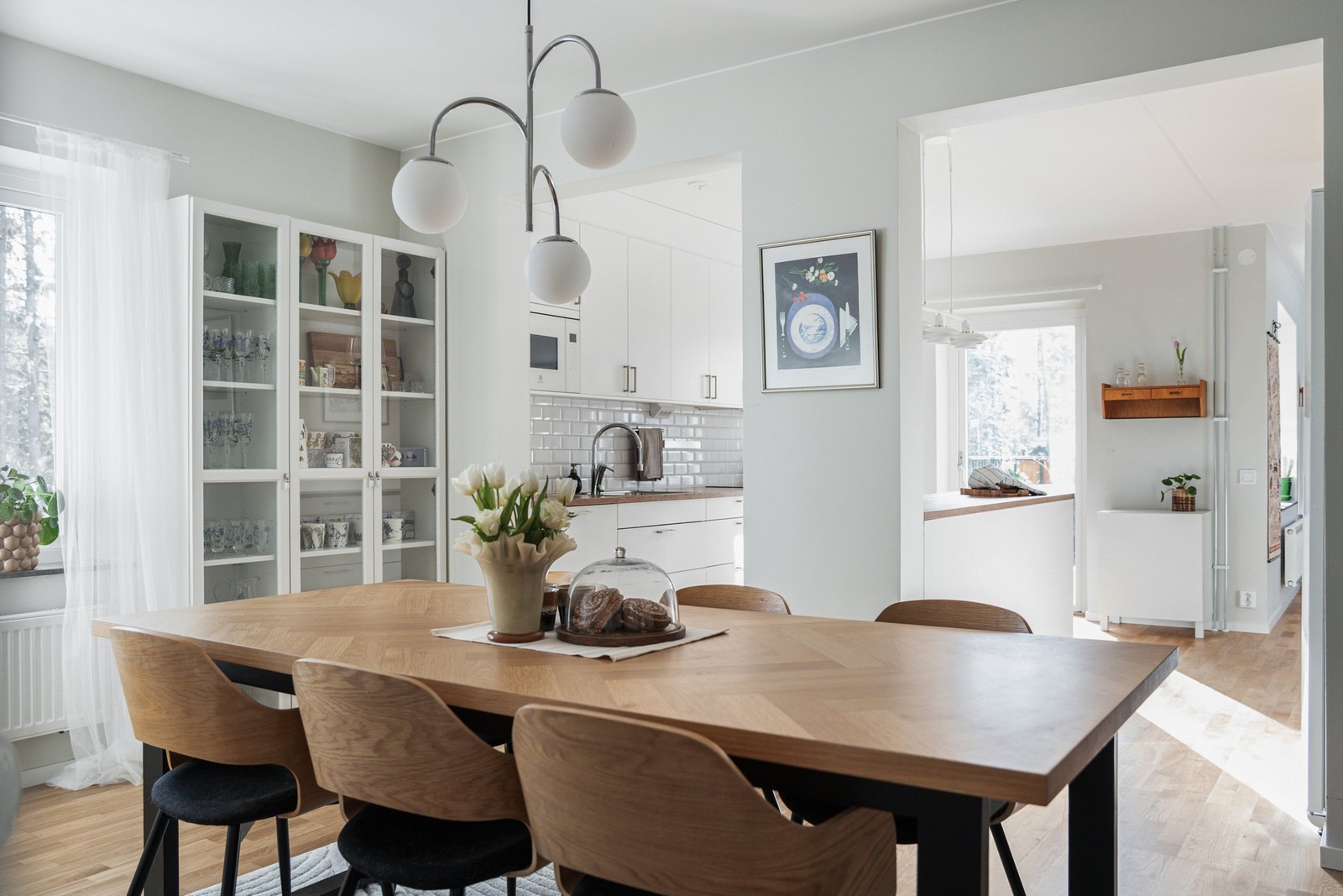 Stort och funktionellt kök från Marbodal med gott om arbetsyta och förvaring. Perfekt för både vardagsmatlagning och större middagar. Den öppna planlösningen skapar en social och trivsam känsla.