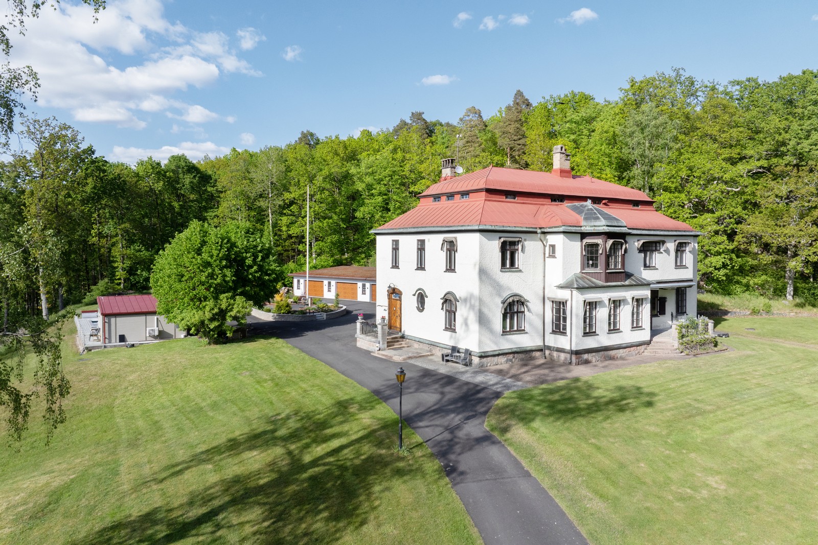 Det var här, vid sjön, på en vacker tomt om drygt 3,5 hektar, som Ekman lät uppföra den herrgård som idag står som en pärla av nationalromantisk arkitektur. Med stora fönsterpartier, vackra stuckaturer och ett plåttak som påminner om ett litet slott, skapades en byggnad som återspeglade både tidens stilideal och Ekmans egna visioner.