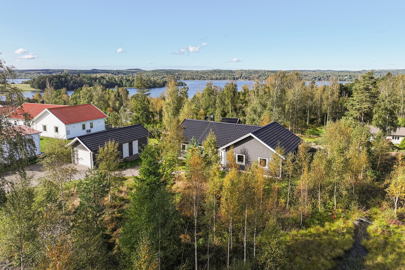 Rymligt enplanshus med sjöutsikt, braskamin och naturnära läge