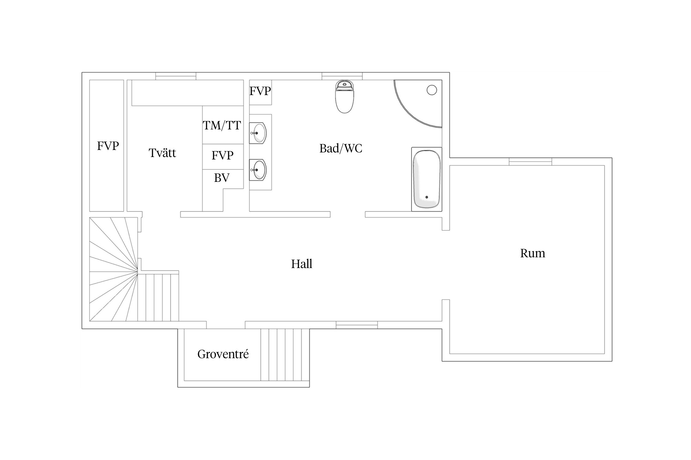 Tvättstuga: Stor och rymlig tvättstuga med gott om plats för både torkning och strykning.