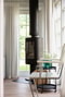 Det tilltagna vardagsrummet med braskamin är husets hjärta. Med en större öppning emellan får du här en luftig känsla mellan matsal och vardagsrum och här har du utgång direkt till den stora terrassen.
