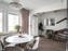 Till höger nås matplatsen som binds samman med köket. Köket från Ikea renoverades 2019 och går i en stilren, vit design med push-open-luckor och bra förvaring tack vare överskåp. Utrustningen är komplett: induktionshäll, fläkt, diskmaskin, ugn, mikro, samt kyl och frys i side-by-side-modell med både ismaskin och vattendispenser. Ett riktigt fint och funktionellt kök.