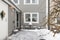 Utanför uterummet finns ett altandäck som leder vidare ut till gräsmattan. Vid tomtgränsen finns ett uppfört växthus samt staket och häck längs vänster sida som ger ett bra insynsskydd.