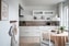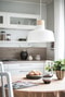 Till höger om hallen nås köket med plats för matbord. Köket renoverades ca 2010 och erbjuder goda arbetsytor, bland annat genom en förlängd bänkskiva med underskåp för extra förvaring. Köket är utrustat med både över- och underskåp med vita luckor samt laminatbänkskiva i ljus tränyans. Den maskinella utrustningen består av induktionshäll, köksfläkt, ugn, mikro, diskmaskin samt kyl och frys i side-by-side-utförande. Genomgående laminatgolv och vitmålade väggar skapar en ljus och trivsam känsla.