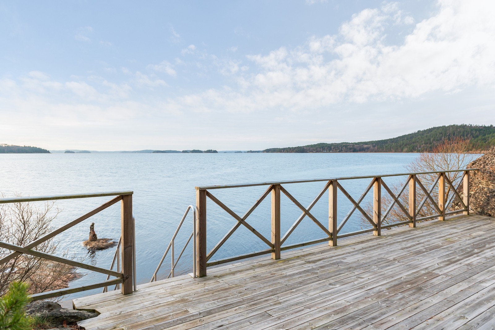 Ikonisk 60-talsvilla med sjötomt, fri panoramautsikt samt högt och privat läge på egen udde