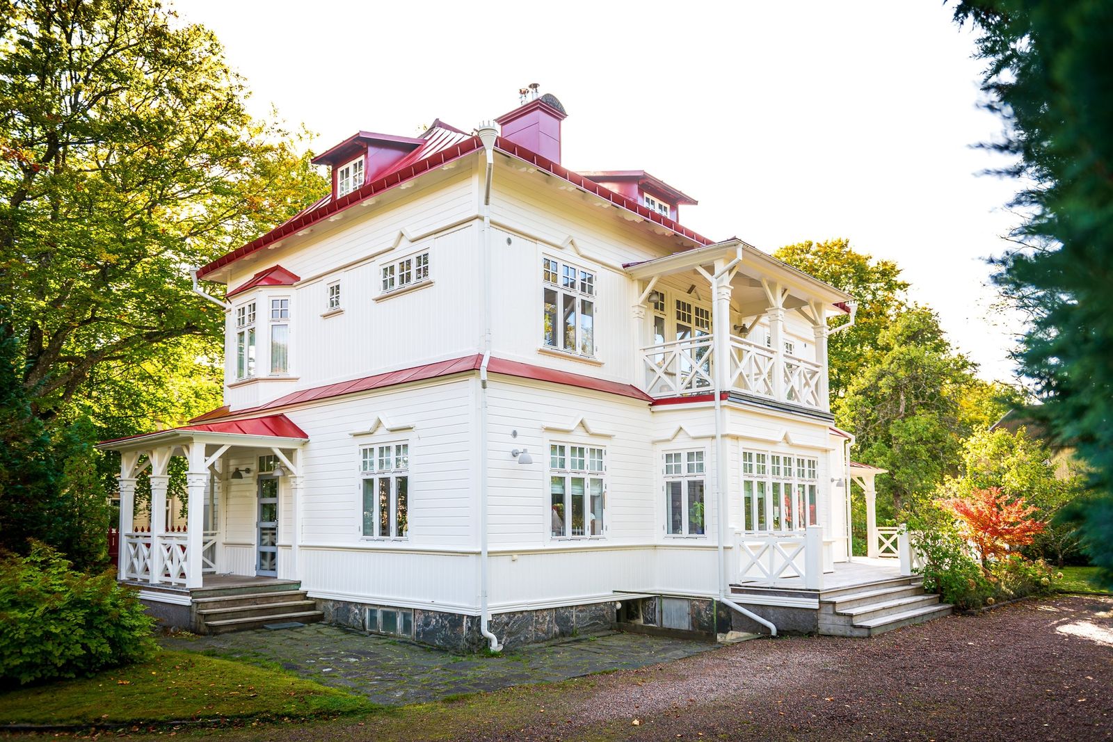 Exklusivt renoverad disponentvilla om 229 kvm med ljusa rumsvolymer, stor veranda och egen brygga