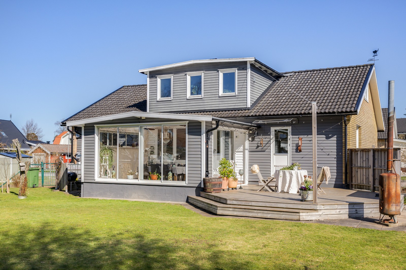 Vardagslyx på hemmaplan med badtunna, prunkande trädgård och stora sociala ytor!
