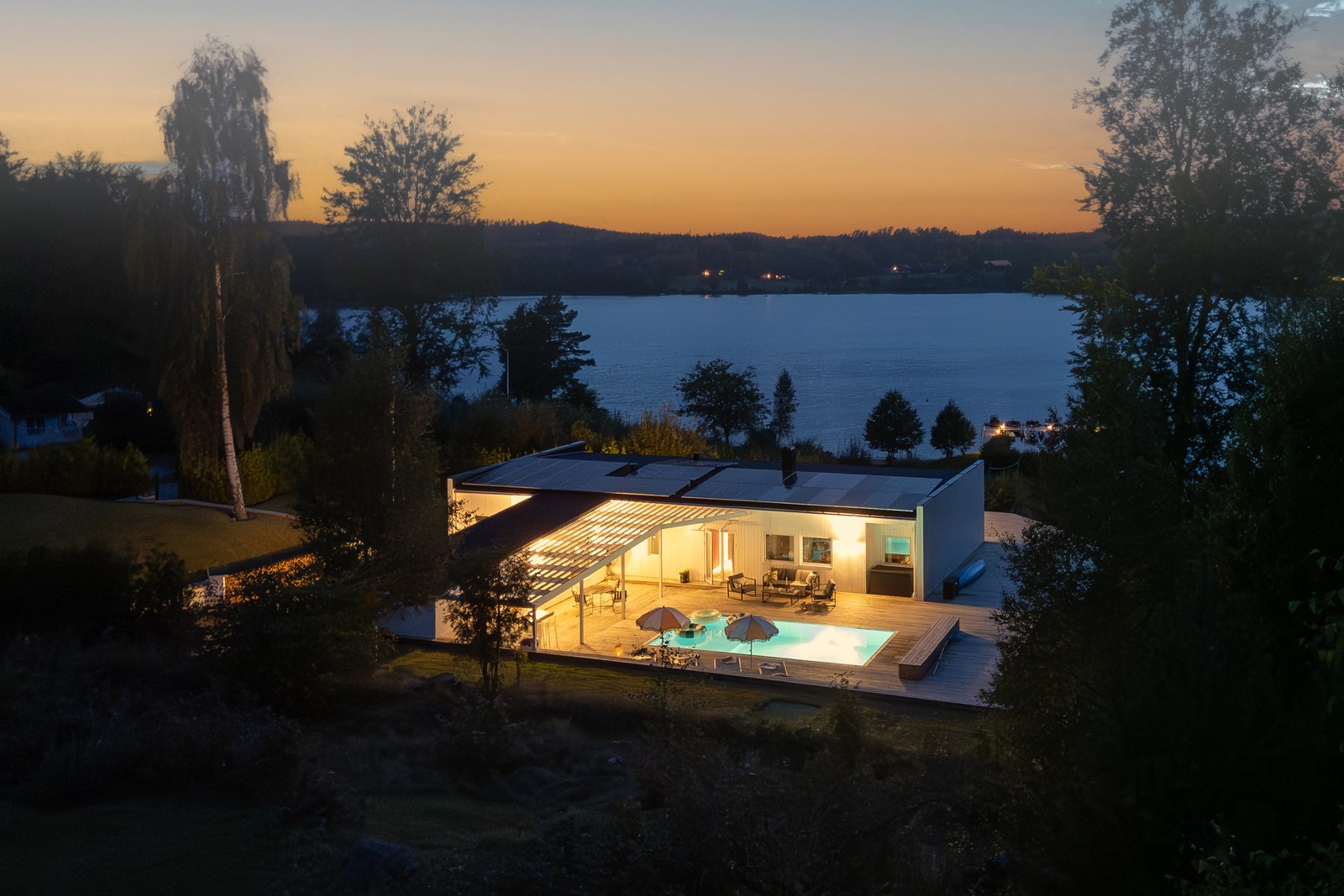 Modern poolvilla med magisk sjöutsikt i västerläge