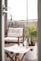 Vardagsrummet är luftigt och lättmöblerat med plats för en generös soffgrupp. De stora fönsterpartierna förstärker känslan av rymd och ljus, och härifrån nås bostadens balkong – en trivsam förlängning av vardagsrummet med rofyllt läge.