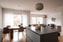 Köket är modernt och smakfullt utformat med släta, mörka luckor, integrerade vitvaror och en centralt placerad köksö som både erbjuder arbetsyta och sittplatser. Här skapas en perfekt balans mellan estetik och funktion.