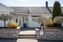 Lättskött tomt med fina stenläggningar och gott om plats för lek och umgänge, exempelvis studsmatta.