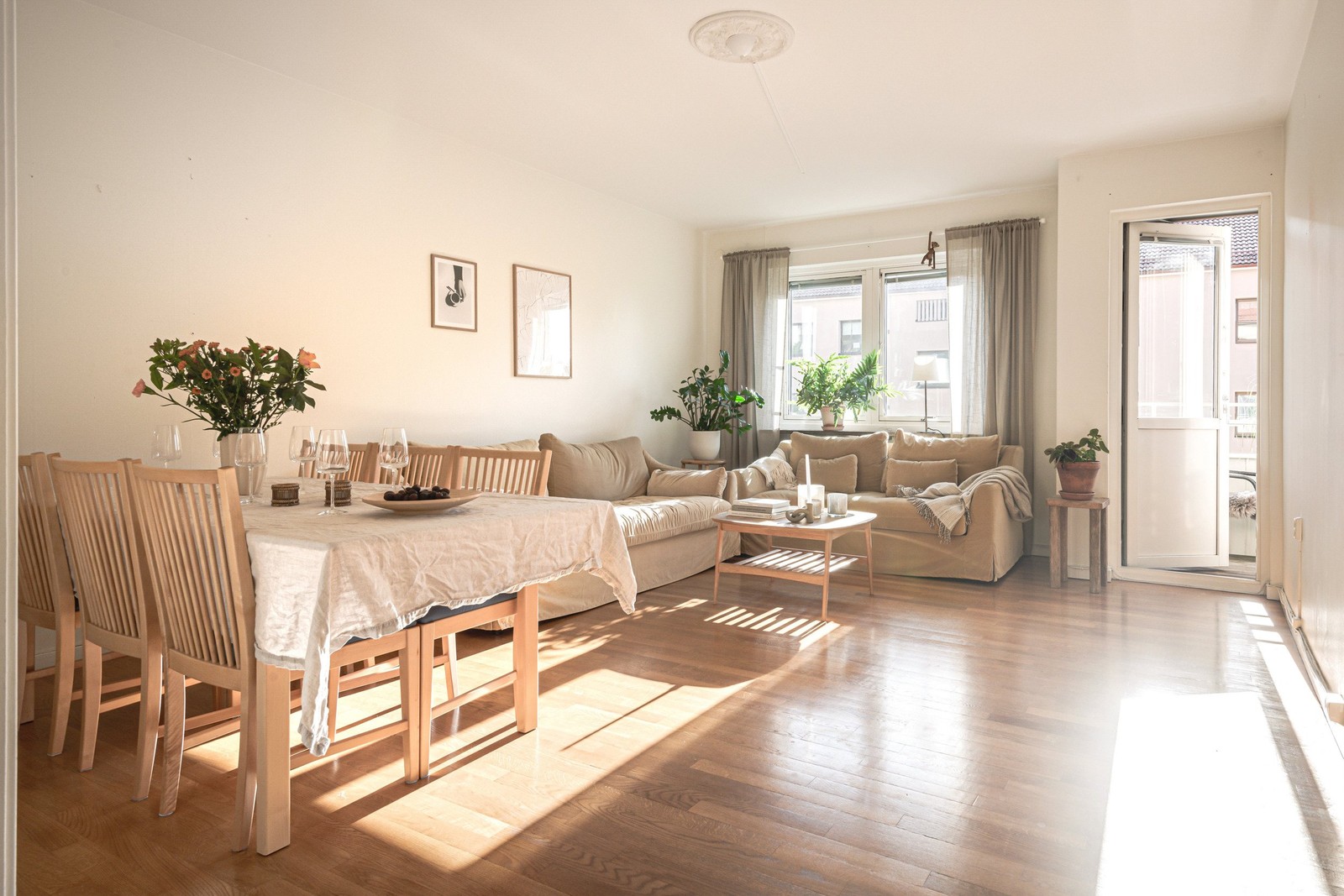 Med ett lugnt och naturskönt läge återfinns denna renoverade trea där varje kvadratmeter är exemplariskt nyttjad. Detta hem har ett trivsamt vardagsrum med plats för en större soff- & matgrupp. Från vardagsrummet nås balkongen som tillför lägenheten ytterligare en dimension. Det fria läget erbjuder sol hela dagen och en härlig vy mot grönska. Köket är smakfullt renoverat och är välutrustat med moderna vitvaror samt goda arbetsytor. Två rymliga sovrum med bra garderobsförvaring samt ett helkaklat badrum med tvättmöjligheter. Här bor du i en populär förening med stabil ekonomi.