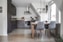 Köket är smakfullt inrett och ger intrycket av exklusivitet direkt vid första anblick. Här erbjuds generösa arbetsytor och bra med förvaring. Luckorna i mörkt trä gifter sig fint med bänkskivan i ljus sten och stänkskyddet i samma ton. Utrustningen består av induktionshäll, takhängandefläkt, ugn, integrerad kyl/frys samt diskmaskin.