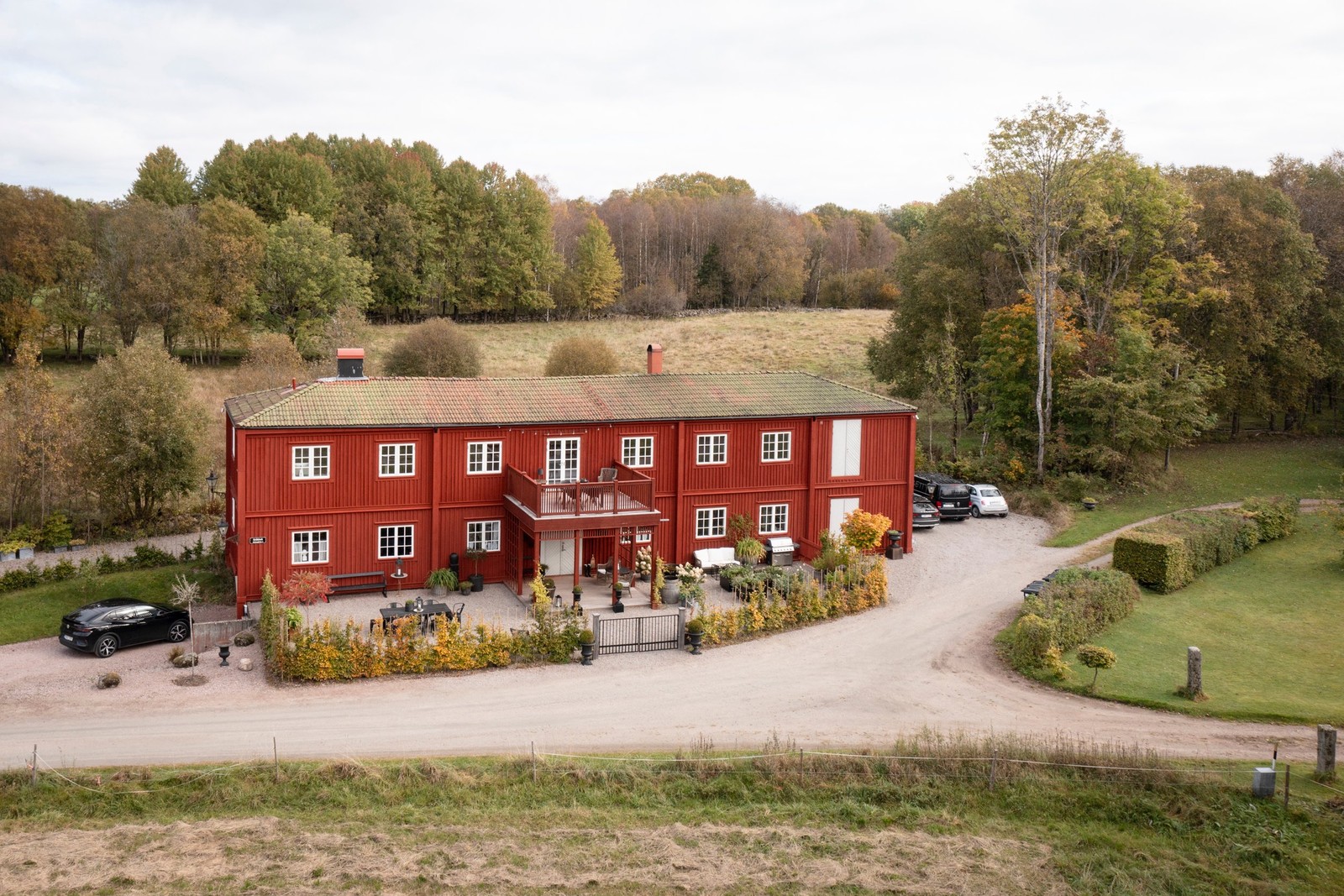 Det är högt till tak, på övre plan ända upp till nock, och flera originaldetaljer utöver de vackra fönsterpartierna finns bevarade i den ljusa interiören. De sobra och öppna ytorna har väl balanserade inslag av flera lätt rustika material som stål, frilagt tegel, oljad betong och de genomgående plankgolven målade i en sobert grå kulör. Resultatet är en tidlöst vacker bostad med en internationell ton och subtila referenser till den ursprungliga fabriksverksamheten. På entréplanet finns mycket stora och massivt ljusa sällskapsytor i öppen planlösning med det stora och exklusiva köket, ett halvetage upp. På detta plan finns även ett större badrum i tidstrogen stil. Övre planets fyra rum och sobra badrum löper längs en L-formad hall med drag av gallerigång där ljuset forsar in. Häruppe finns även en terrassbalkong med traditionell inramning och utsikt över de pastorala omgivningarna. Ett av villans huvudnummer är det smått spektakulära orangeriet med heltäckande fönsterpartier i tre väderstreck, utekök och gott om plats för stora fester och middagar. Ena delen av den långa huvudbyggnaden består av ett större garage med fri takhöjd, lift, verkstadsdel mm. Dessa ytor också tänkbara som konstnärsateljé, studio eller eget företagande. Den uppvuxna trädgården har flera uteplatser som fångar solen under hela dagen. Det privata läget i natursköna omgivningar är dessutom överraskande strategiskt med cirka 100 meter upp till Boråsvägen. Tar du till höger når du Dalsjöfors på två minuter; med service och skolor F–9. Svänger du vänster kan du parkera i centrala Borås efter en knapp kvart eller ta dig vidare till centrala Göteborg på 45 minuter. Till Dalsjöns skogsklädda stränder cyklar du på fem minuter.