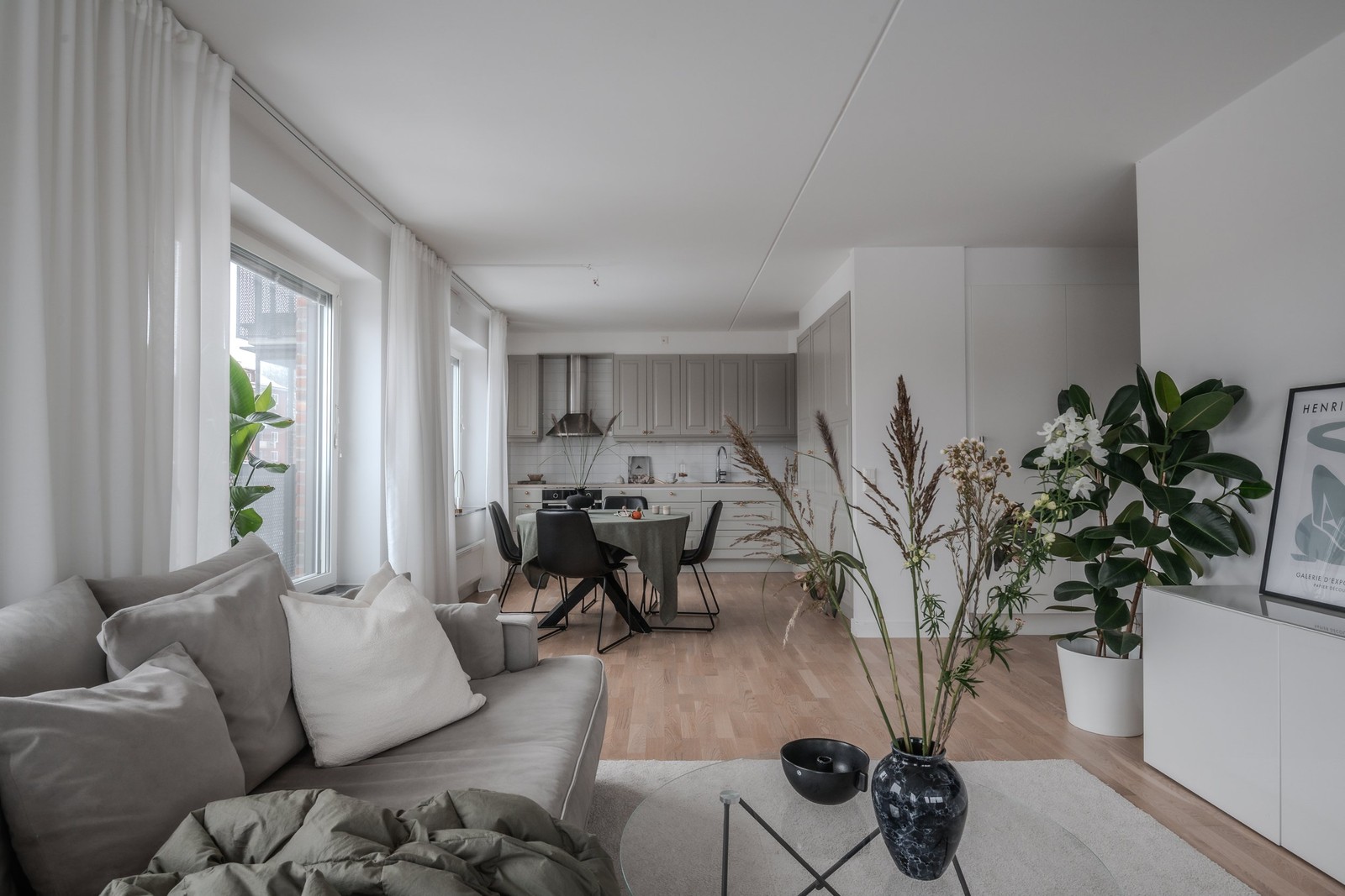 Med uppskattat läge i huset ges nu tillfälle att förvärva denna exklusiva våning i ett av Borås populäraste områden. Hemmet omfattar välplanerade kvadratmeter med rikligt ljusinsläpp från stora fönsterpartier. Genomgående parkettgolv och harmoniska färgval förstärker den stilrena och exklusiva känslan. Kök och vardagsrum samspelar i en öppen planlösning som skapar rymd och inbjudande sällskapsytor. Köket präglas av påkostade tillval som lyfter helhetsintrycket, med goda arbetsytor och gott om förvaring. Som en naturlig förlängning av hemmet nås den rymliga inglasade balkongen, ett uppskattat extrarum att njuta av under stora delar av året tack vare de installerade värmelamporna. Vidare erbjuds två bra sovrum samt ett smakfullt helkaklat badrum med tvättavdelning. Optimala förvaringsmöjligheter i flertal garderober och förrådsutrymmet som tillhör bostaden.