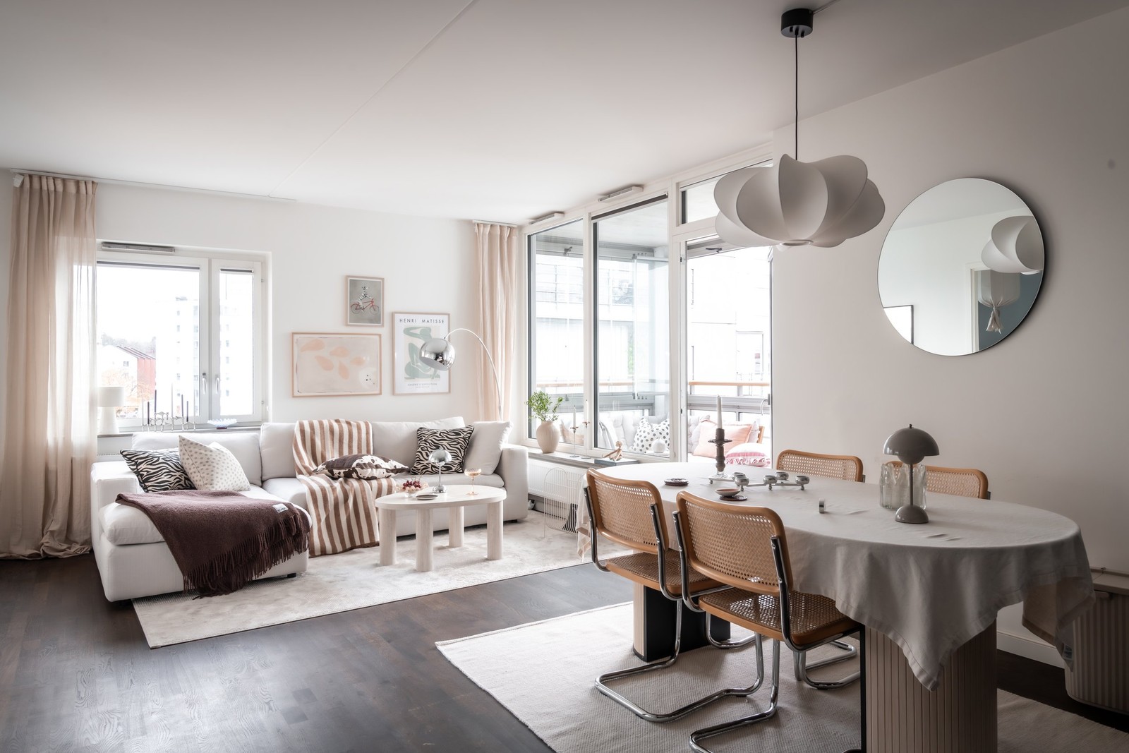 Sovrummet ligger rofyllt placerat med en rejäl skjutdörrsgarderob som ger utmärkt förvaring. Genomgående kvalitativa materialval i form av ekparkett och slätmålade väggar ger en neutral och harmonisk bas att inreda efter, något som gjort det lätt för säljaren att skapa en personlig och trivsam atmosfär. I anslutning till vardagsrummet finns en generös inglasad balkong som snabbt blivit hemmets favoritplats. Här njuter man av solen från eftermiddag till kväll – perfekt för både avkoppling och umgänge.