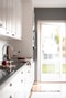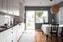 Köket upplevs modernt och smakfullt med vita skåpsluckor, gott om förvaring och en stilren bänkskiva som gör matlagningen både enkel och inspirerande. Det ljusa liggande kaklet förstärker den moderna känslan. Här finns induktionshäll, inbyggd ugn och mikro, vägghängd fläkt, integrerad diskmaskin samt en rymlig side-by-side kyl/frys. Från köket når du uteplatsen på framsidan – en solig plats att njuta av större delen av dagen.