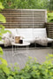 En uteplats på entréplan och en balkong på övre plan