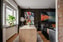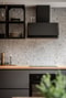 Bostaden erbjuder ett modernt kök med mörkgråa, släta luckor med integrerade handtag samt en bänkskiva i trä. Ovanför bänkskivan pryds väggen av Terrazzoklinker som elegant sträcker sig hela vägen upp till tak. Full maskinell utrustning så som induktionshäll, fläkt, ugn, inbyggd mikro samt integrerad diskmaskin och integrerad kyl/frys. Köket ligger i en öppen planlösning mot vardagsrummet men avgränsas av en tegelvägg som skapar en fin och karaktärsfull detalj.