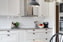 Köket är ett resultat av en lyckad projektering där smakfulla val möter generösa arbetsytor och bra med förvaring. Skåpsluckor i vitt möter en vacker bänkskiva och ett rektangulärt ovansittande kakel. Tillsammans med vitvarorna i rostfritt stål blir intrycket oerhört genomtänkt i sin helhet. Utrustningen består av induktionshäll, spisfläkt, ugn, micro, kyl och frys samt diskmaskin. Från köksdelen nås den härliga balkongen med en trivsam utsikt ut mot föreningens innergård. Här kan man njuta av solen fram till kvällen i en harmonisk och lummig miljö och ges gott om plats för utemöbler och planteringar utan att det känns trångt.