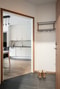 Välkommen in! På golvet ligger ett praktiskt klinkergolv och väggarna är vitmålade precis som i övriga bostaden. I hallen finns det gott om plats för avhängning av ytterkläder och skor samt en garderob.