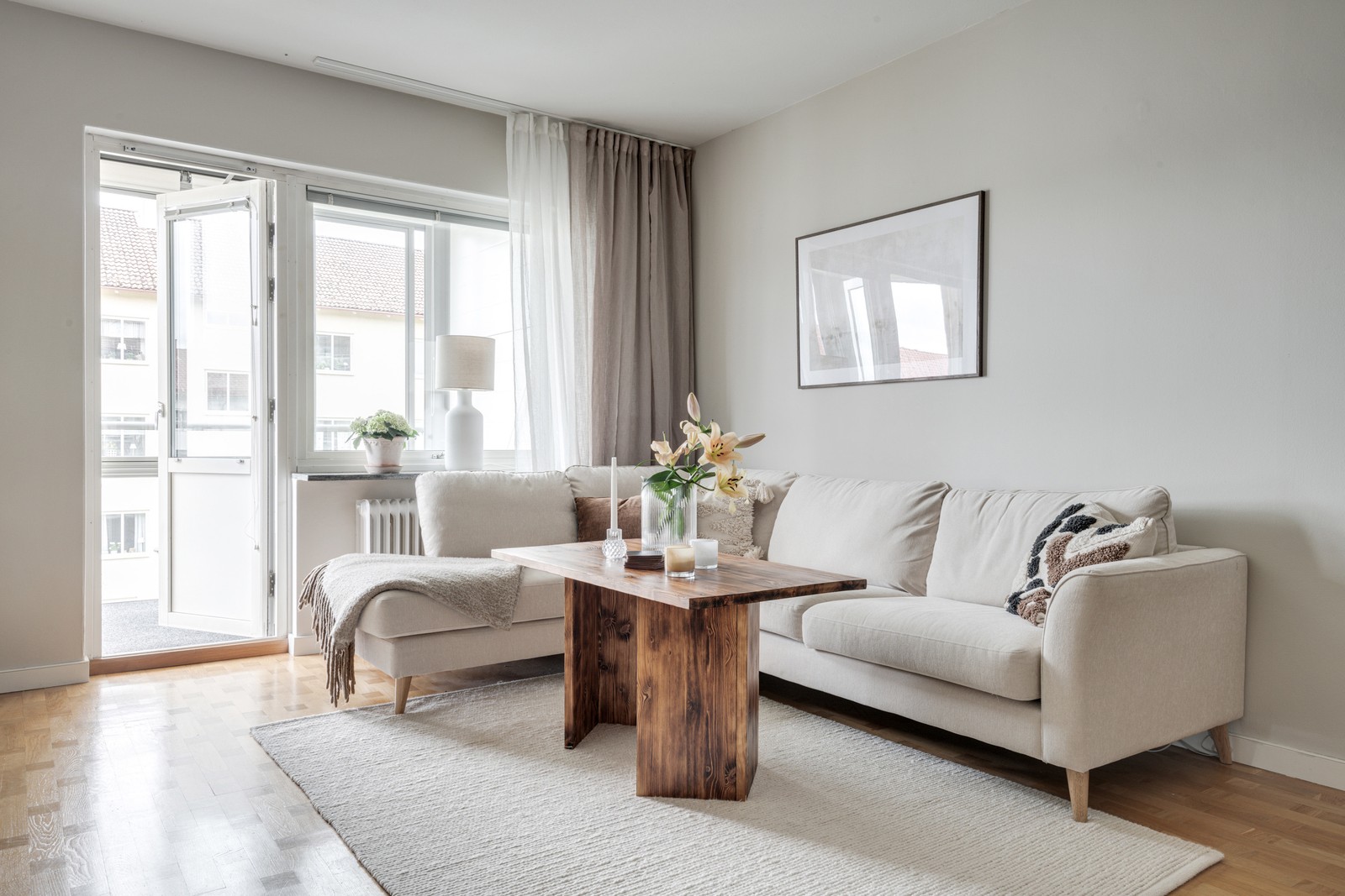Med ett lugnt och naturskönt läge återfinns denna väldisponerade bostad där varje kvadratmeter är exemplariskt nyttjad. Bostaden är ytterst insynsskyddad och erbjuder stora sällskapsytor i kombination med härligt ljusinsläpp från dubbla väderstreck som skapar ett luftigt och levande hem. Kök och vardagsrum i en social planlösning med gott om plats för soff- & matgrupp. Väl tilltaget och avskilt sovrum mot grönområde som inger lugn och ro. Helkaklat badrum med tvättmaskin samt en uppskattad inglasad balkong som blir en given favoritplats under sommarhalvåret med fin utsikt över närområdet. Förvaringsmöjligheterna goda i såväl bostaden som via de generösa förrådsytorna på både vind och i källaren.