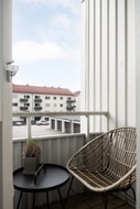 Från vardagsrummet nås den härliga balkongen. Balkongen är rymlig och har gott om plats för utemöbler och planteringar, här kan man njuta av solen med en vacker utsikt över området.