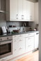 Köket ligger i delvis öppen planlösning mot hall /vardagsrummet och är ett klassiskt kök med vita skåpsluckor och vitvaror i rostfritt stål. Här finns gott om förvaring i skåp samt generösa arbetsytor på båda sidor. Den maskinella utrustningen består av induktionshäll, varmluftsugn, vägghängd fläkt, diskmaskin samt kombinerad kyl och frys.