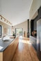 Det stilrena köket, med exklusiva material och påkostad belysning styrd via Plejd, blir en naturlig samlingsplats. Härifrån har du öppen kontakt med vardagsrum och utgång till den stora balkongen – perfekt för både vardag och sociala stunder. Braskaminen sätter stämningen under kyligare månader och förstärker den ombonade känslan.
