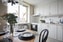 Hemmets smakfulla kök är inrett i ljusa toner där vita luckor matchas snyggt med det vita kaklet ovan diskbänken. Här finns både bra arbetsytor på den ljusa bänkskivan samt gott om förvaringsutrymmen i de många luckor och skåp. Köket är utrustat med spis, fläkt, ugn samt kyl/frys. Invid det stora fönsterpartiet ges gott om plats för större matbord.