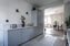 I direkt närhet till umgängesytorna ligger våningens kök. Ett platsbyggt kök med grå skåpsluckor och svart kromade beslag. På bänkskivan i sten blir matlagningen ett nöje. Rejält med förvaring i skåp och goda arbetsytor på båda sidor. Den maskinella utrustningen består av spishäll, ugn, vägghängande fläkt, integrerad diskmaskin och side-by-side kyl och frys. Vackert ljusinsläpp från ett högt och vackert glasparti med burspråk som blir en perfekt nisch för ett större köksbord. Här vilar ni ögat ut över parken, en harmonisk plats där alla årstider får visa sig samtidigt som morgonsolen gör er sällskap vid frukostbordet.
