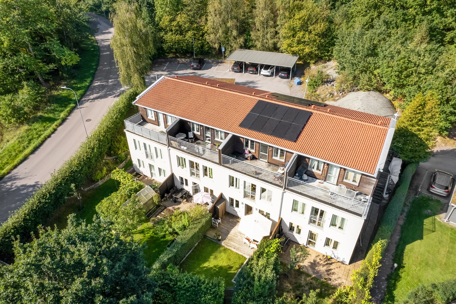 Frånluftsvärmepump med värmeåtervinning samt solceller ger låga energikostnader.
