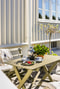 Från köket når du den möblerbara glasverandan – en ljusfylld plats som förlänger både säsongen och umgänget. Härifrån kliver du rakt ut till baksidans pooldäck och trädgård.