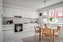 Bostaden är välplanerad och fördelad över tre plan med ett modernt kök i stilrena vita toner och en inbjudande matplats vid stort fönster i soligt västerläge. Entréplanet bjuder på sociala ytor med ett rymligt vardagsrum som rymmer både matsalsmöbel och soffgrupp, samt utgång till en generös uteplats där solen kan avnjutas under förmiddagen – perfekt för både avkoppling och umgänge.