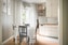 Sovrummet nås via vardagsrummet och har samma fina brädgolv i samband med dem härligt ljusa väggarna. En stor garderob med skjutdörrar erbjuder generös förvaring, och här finns gott om plats för en dubbelsäng med sängbord.
