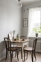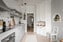 Rakt fram välkomnas du in i det rymliga köket med härligt fönster med utsikt mot träden och fältet. Här lägger du direkt märke till det vackra brädgolvet i original som matchar de ljusa väggarna i en fin kombination. Köket är modernt renoverat 2019 med gråa skåpsluckor och retrohandtag. På den gråa bänkskivan finns gott om arbetsyta och ovan pryder ett vitt kakel på hela väggen. Väggen pryds även av stringhyllor som en extra fin detalj. Köket är luftigt placerat med underskåp full av förvaring. Förvaring finns det även gott om i det fina bevarade serveringsskåpet, en riktig läckerbit som ger charm i bostaden. Här finns kyl/frys, ugn, spis, fläkt samt diskmaskin. Köket ger plats åt ett större matbord längs ena väggen. En liten öppning i väggen har gjorts mot allrummet, charmigt!