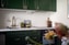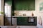 Köket är smakfullt renoverat med gröna stilrena skåpsluckor och generösa arbetsytor. Här finns gott om förvaring och plats för allt du behöver i vardagen. Den maskinella utrustningen består bland annat av diskmaskin, kyl och frys samt spis och fläkt – allt snyggt integrerat i den harmoniska köksmiljön. Ett trivsamt kök där det är lätt att både laga mat och umgås.