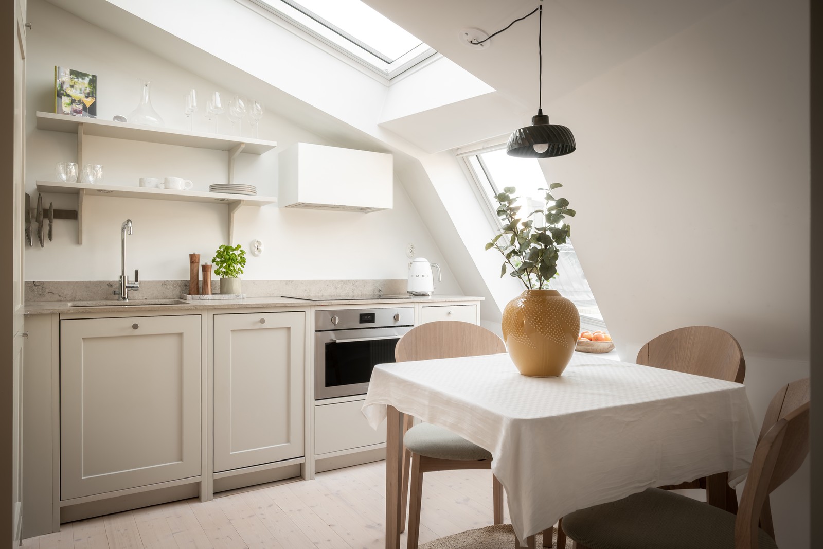 Charmig topprenoverad vindsetta med utsikt över takåsarna!
