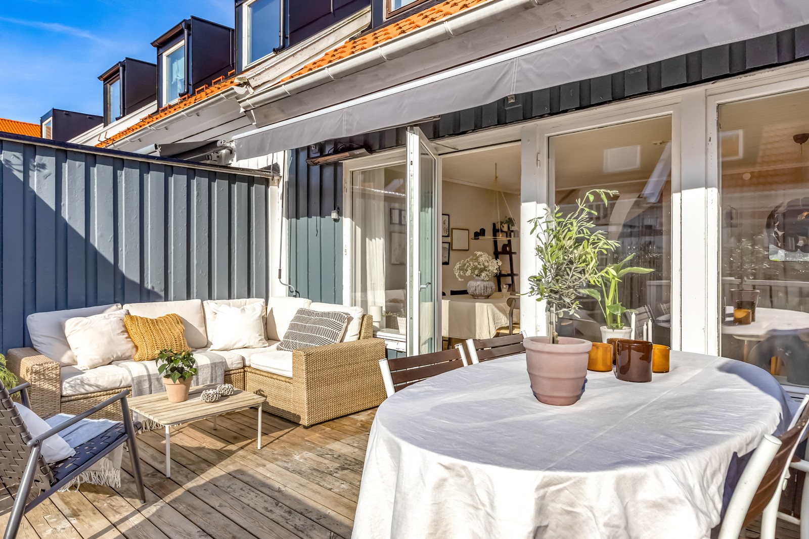 Soldränkt altan i västerläge
