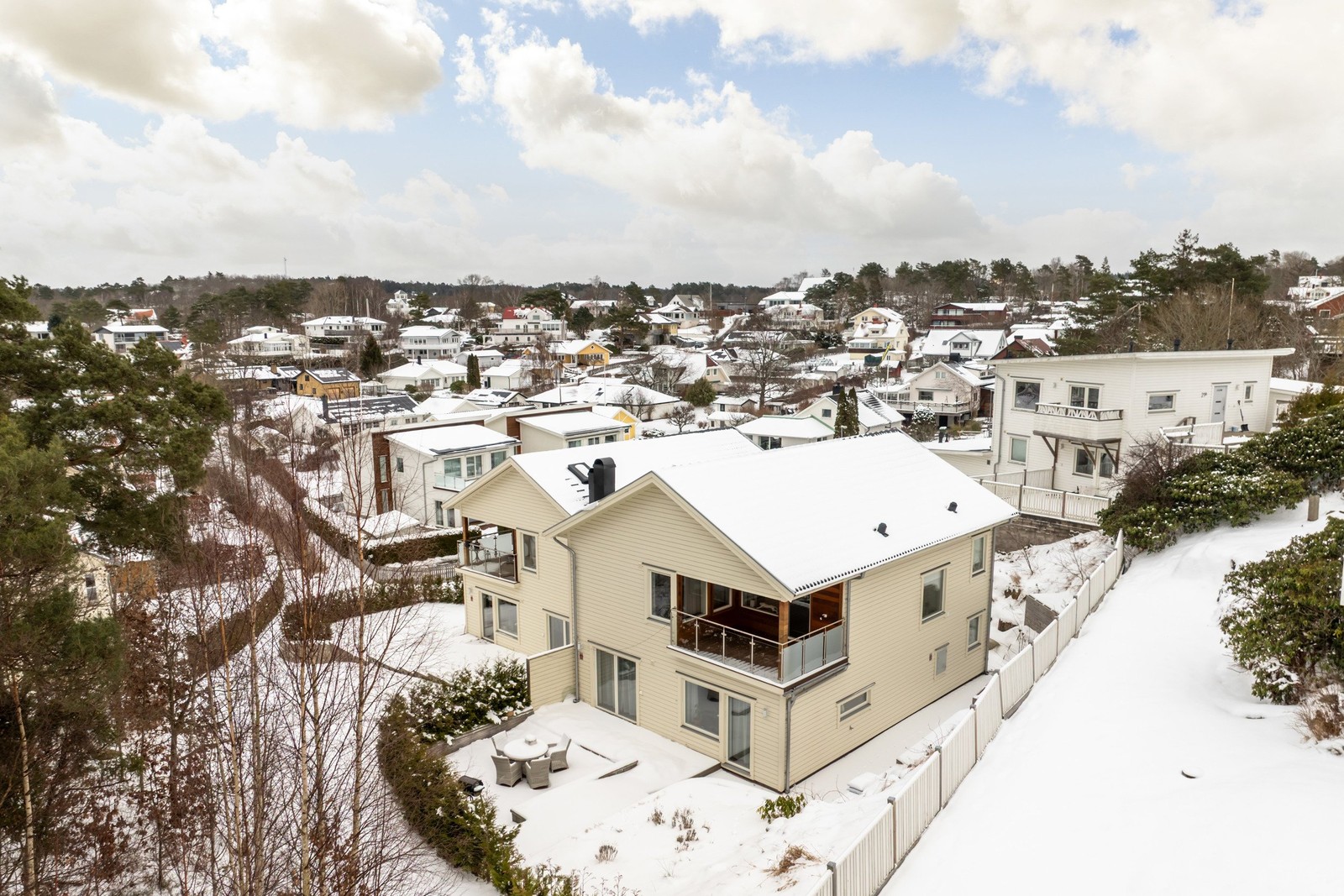 Huset är placerat på en idyllisk och barnvänlig återvändsgata – nästan helt fri från trafik – med skogen som närmsta granne. Här bor du insynsskyddat, privat och med naturens gröna lugn runt hörnet. Promenadavstånd till Billdalsbadet och Killingsholmen ger dig bad, bryggor och havskänsla inom bekvämt räckhåll.