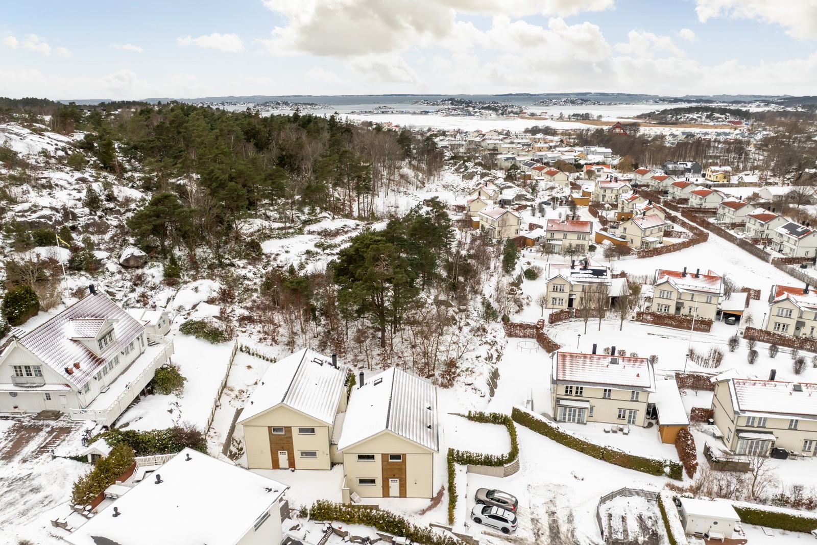 Huset är placerat på en idyllisk och barnvänlig återvändsgata – nästan helt fri från trafik – med skogen som närmsta granne. Här bor du insynsskyddat, privat och med naturens gröna lugn runt hörnet. Promenadavstånd till Billdalsbadet och Killingsholmen ger dig bad, bryggor och havskänsla inom bekvämt räckhåll.