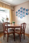 Köket är praktiskt och modernt utformat med bruna luckor och vitt kakel ovan bänkskivan. Här finns både bra arbetsytor, gott om förvaring samt en naturlig matplats intill fönstret. Den maskinella utrustningen består av ugn och spishäll, fläkt och hel kyl.