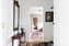 Härifrån nås det hemtrevliga köket med skåpsluckor i vitt. I köket finns utrustning såsom spis, fläkt och kombinerad kyl/frys.
