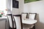 Köket är fullt utrustat med diskmaskin, spishäll, ugn, fläkt samt kombinerad kyl och frys. Här finns plats för matbord för flera personer.